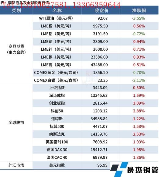 ◎ 湖南省工信厅正式发布《湖南省冶金行业“十四五”发展规划》提出,到2025年,研发一批高附加值厚壁无缝钢管新产品,高效品种钢占比达到65%;培育形成1家世界500强现代化钢铁企业;建立规范有序的多元化废钢资源保障体系,力争到2025年,湖南省钢铁工业的废钢比达到30%,全省冶金行业实现主营业务收入3000亿元以上。