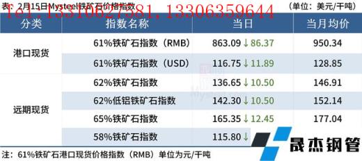 ◎ 2月14日上午,中国钢铁工业协会副会长骆铁军与力拓(Rio Tinto)铁矿市场营销副总裁方睿思(Simon Farry)举行视频会议,双方就中国钢铁行业运行、力拓的生产与销售、近期铁矿石市场情况等进行了交流。力拓方面表示,赞同铁矿石价格应由实际供需决定,力拓将继续开展现货交易以支持公开透明的价格形成,并将尽最大努力来满足中国对其铁矿石品质和数量的需求。