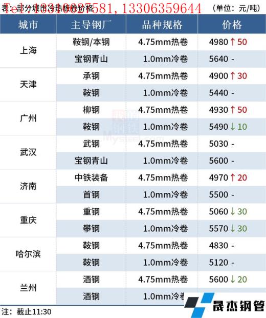 ◎乐从:16日早盘热卷市场价格上涨50,4.75以上普柳燕4930-4940,2.75普5000-5150锰5120-5140。(单位:元/吨)
