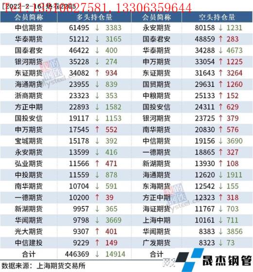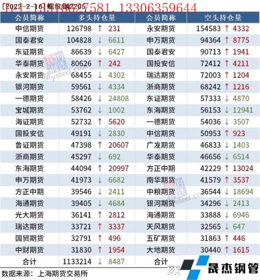 截至2月16日收盘,螺纹钢2205收4832元/吨,涨1.85%;热卷2205收4939元/吨,涨1.46%;铁矿石2205收720元/吨,跌1.1%。