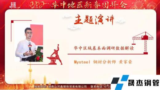 黄分析师首先对去年全年价格进行了总结,去年价格整体宽幅震荡运行。接着对鄂湘赣区域无缝厚壁钢管厂家春节期间检修/停产情况、建筑厚壁无缝钢管产能利用率、春节前后社库对比与成交量表现、无缝厚壁钢管厂家厂内库存情况和春节前建筑厚壁无缝钢管冬储政策调研概况进行了阐述和分析。最后从供应、库存、需求、成本、宏观、心态等基本面做了节后观点的总结。