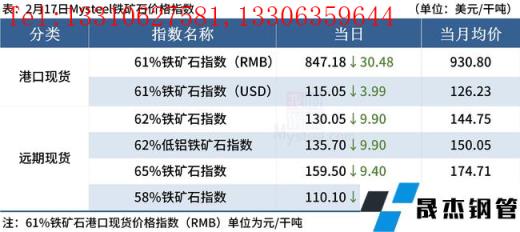 ◎ 2月17日,全国主港铁矿石成交102.00万吨,环比减24.4%;237家主流贸易商建材成交6.42万吨,环比减24.6%。