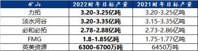 ◎ 澳洲巴西19港发运量显示,2021年澳巴铁矿发运总量12.77亿吨,环比增加1701万吨,增量主要来自于巴西。根据各大矿山2022财年生产计划情况来看,力拓和淡水河谷目标产量与去年基本持平,必和必拓和FMG均存在一定增量,并且高矿价下,其它矿山例如英美等也将有一定增产的潜力,预计2022年全球铁矿石产量同比将小幅增加。