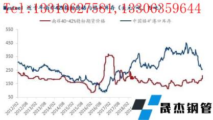 一、近十年铬矿价格与铬矿库存走势