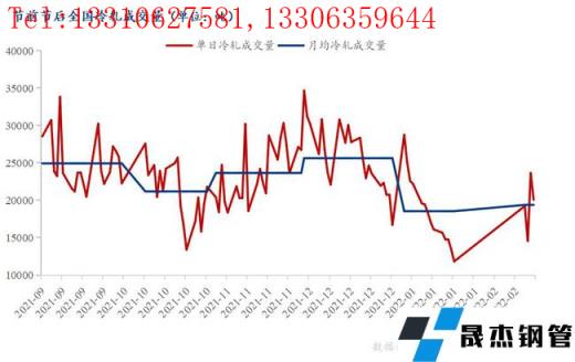 2022年2月17日(农历正月十七)全国162家冷轧成交量为20073吨,年后成交量最高值23649吨,周度平均成交量为19378吨,与9月份以来最低月均成交量21184吨相比,降幅为8%左右,可见当期市场需求并未完全开启。并且多数商家表示,除个别天数达到正常成交外,其余基本在正常5-6成水平。