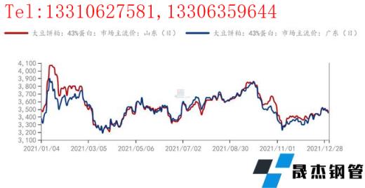 具体来看,2021年广东饲料总产量涨幅较大,除了下游终端需求给力之外,同样豆粕价格全年较低,给当地的饲料企业加大了饲料利润,有足够大成本投入生产从而加大饲料市场扩张。2021全年广东市场43%豆粕均价3518.08元/吨比山东3544.28元/吨便宜26.2元/吨。饲料蛋白原料价格相对低,给终端市场降低了养殖成本,增大投入了积极性。