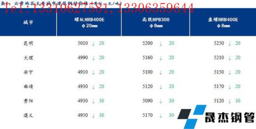 【今日价格】从云贵主要城市建筑厚壁无缝钢管价格来看,今日云南建筑厚壁无缝钢管市场价格下跌20元/吨,贵州建筑厚壁无缝钢管市场价格下跌30元/吨。