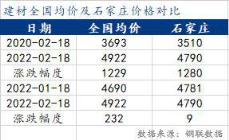 根据数据,截至2月18日,螺纹钢全国均价4922元/吨,较上月19日上涨了232元/吨,较去年同期上涨了1229元/吨;石家庄地区建筑厚壁无缝钢管价格在4790元/吨左右,较上月19日上涨了9元/吨,较春节后高点跌了230元/吨,当前价格较去年同期上涨1280元/吨。当前市场价格远高于去年同期水平,但春节后价格上涨、下跌均快于全国平均水平。