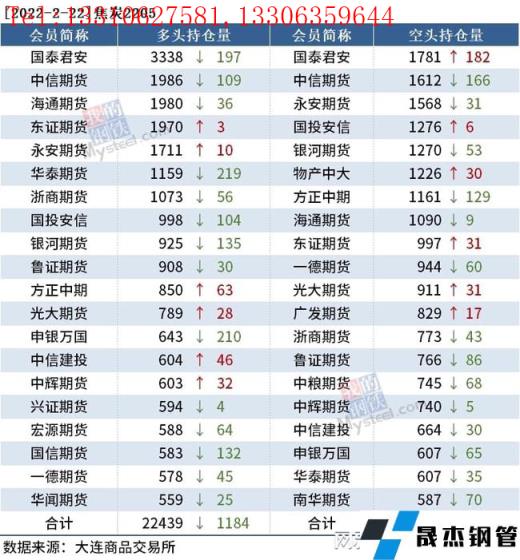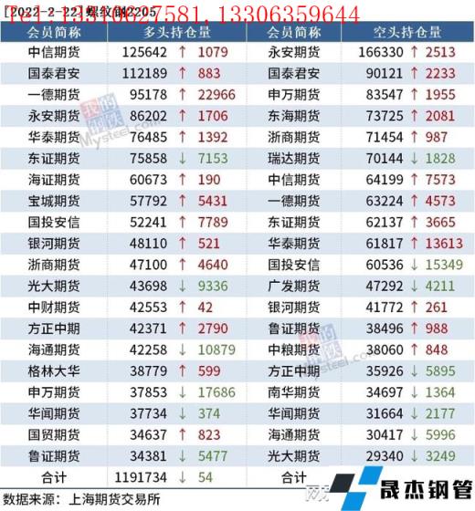截至2月22日收盘,螺纹钢2205收4734元/吨,跌1.13%;热卷2205收4850元/吨,跌1.34%;铁矿石2205收684.5元/吨,跌0.07%。