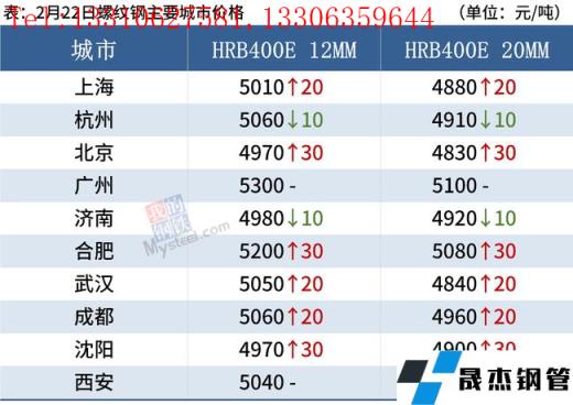 建筑厚壁无缝钢管:2月22日,全国31个主要城市20mm三级抗震螺纹钢均价4939元/吨,较上个交易日上涨10元/吨。短期来看,消费虽有恢复预期但下游资金到位情况较差,前期偏高的春季消费预期大概率将被证伪,若本周需求仍无明显好转迹象,则现货存在继续下跌的风险,预计23日国内建筑厚壁无缝钢管或将稳中趋弱运行。