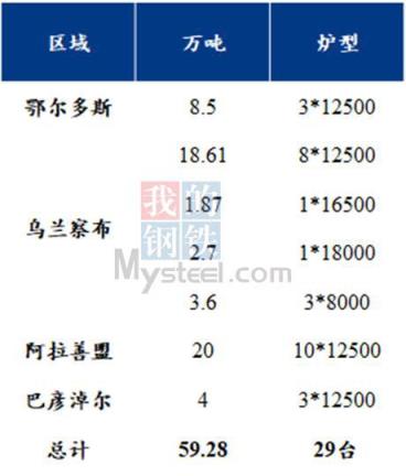 1、退出类:内蒙古区域25000千伏安及以下矿热炉: 共计29台,涉及量59.28万吨,占内蒙古硅锰产能10.7%。其中:乌兰察布市13台,共计26.78万吨(45.2%),鄂尔多斯市3台,共计8.5万吨(14.3%),阿拉善盟10台,共计20万吨(33.7%),巴彦淖尔3台,共计4万吨(6.7%)。