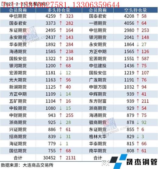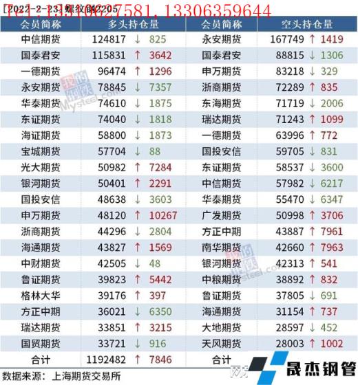 截至2月23日收盘,螺纹钢2205收4786元/吨,跌0.71%;热卷2205收4917元/吨,跌0.36%;铁矿石2205收700元/吨,跌0.78%。