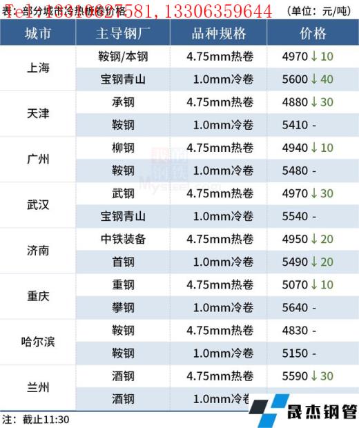 ◎乐从:24日早盘热卷市场价格下跌10,4.75以上普柳燕4940-4950,2.75普5010-5160锰5120-5140。(单位:元/吨)