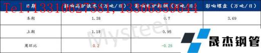 江苏无缝厚壁钢管厂家本周影响产量小幅增加,共计12家无缝厚壁钢管厂家非正常生产,较上周检修停产钢企数量增加1家,铁水影响产量增加0.2万吨/日,粗钢影响产量减少0.25万吨/日,成材影响产量减少0.25万吨/日,随着下游陆续复工复产,厚壁无缝钢管交易逻辑将逐步从预期转为现实,需求好转的预期能否兑现以及库存消化的幅度将成为市场重要影响因素,本周钢企生产变动不大,短期将或一直保持这样的生产节奏。具体情况及各主要品种日均影响产量(单位:万吨)详见下表: