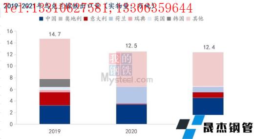 但2021年中国自俄罗斯的镍板进口锐减,全年进4.61万吨,占精炼镍总进口量的17.65%,为2011年以来进口量最低的一年,也是进口量占比最低的一年。其原因在于2021年2月诺里尔斯克因矿场发生渗水事故而减产18.12%;加之2021年8-12月俄政府加收镍产品出口税;以及2021年挪威、住友、南非等其他进口镍板挤占国内市场,俄镍进口利润降低,国内贸易商与俄方长单签订受阻。