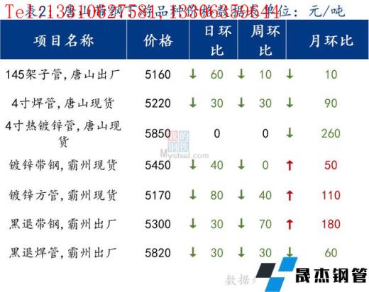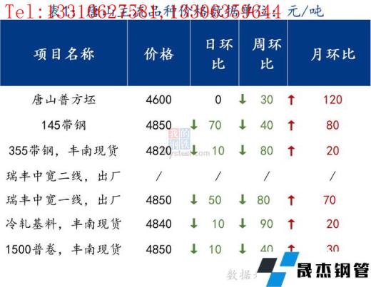145带钢出厂4850元/吨,较上一交易日跌70元/吨。355带钢市场现货价格4820元/吨,较上一交易日跌10元/吨。焊管价格5220元/吨,较上一交易日跌30元/吨,镀锌管价格5850元/吨,较上一交易日持平。