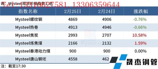 ◎ 调研247家无缝厚壁钢管厂家高炉开工率73.44%,环比上周增加3.85%,同比去年下降16.06%;高炉炼铁产能利用率77.61%,环比增加2.17%,同比下降15.11%;无缝厚壁钢管厂家盈利率83.12%,环比增加2.16%,同比下降2.60%;日均铁水产量208.85万吨,环比增加5.85万吨,同比下降37.78万吨。