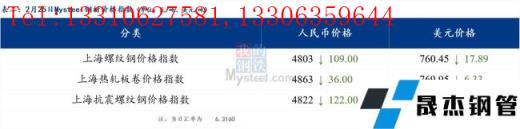 分地区方面,上海螺纹钢价格指数4803,下跌109.0;上海热轧板卷价格指数4863,下跌36.0。(单位:元/吨)