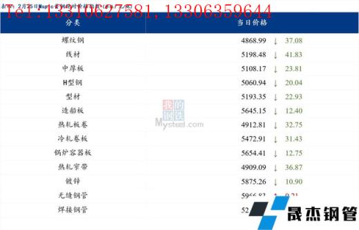 2月25日普钢绝对价格指数变化:综合指数5094.74,下跌32.4;螺纹钢指数4868.99,下跌37.08;线材指数5198.48,下跌41.83;热轧板卷指数4912.81,下跌32.75;冷轧板卷指数5472.91,下跌31.43;中厚板指数5108.17,下跌23.81。