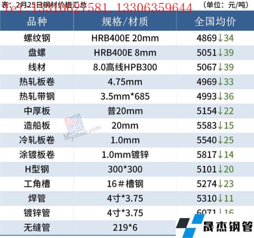 建筑厚壁无缝钢管:2月25日,全国31个主要城市20mm三级抗震螺纹钢均价4869元/吨,较上个交易日下跌34元/吨。由于冬奥会限产影响边际放松,本周建材产量继续回升,同比减少54万吨,但同时需求边际好转,不过库存仍然处于累库阶段。短期来看,近期影响市场运行不确定因素较多,大宗商品价格波动剧烈,同时目前需求恢复不及预期,但产量出现回升。短期在低供给低需求状态下,预计下周国内建筑厚壁无缝钢管或将维持偏弱运行。