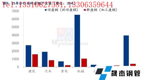 由于节后房地产的回升大概率不及预期,那么加工废钢的产量节后大概率也不会回升太多,因为加工废钢中建筑行业的贡献量最大(图9所示)。所以节后受限于需求回升的幅度,那么加工废钢的供给可能会偏紧,那么就会加大折旧废钢的回收。上面已经介绍过,折旧废钢的供应弹性较大,若下游需求好转,折旧废钢的回收量也能够提升。