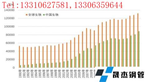1990年-2020年全球和中国炼钢生铁产量走势图