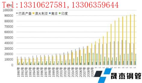 进入新千年以后,中国钢铁产能加速扩张带来的强劲需求,拉动全球铁矿石产量快速增长。据世界钢协(WSA)统计数据,2020年,全球铁矿石生产国合计产量为23.4亿吨。其中澳大利亚铁矿石产量达到9.2亿吨,占全球产量的比重达39.5%,是世界上铁矿石产量最高的国家;巴西铁矿石3.9亿吨,占全球产量的比重为16.7%;印度和南非产量分别为2.0亿吨和0.7亿吨,占比分别为8.7和3.0%。上述四个国家的铁矿石产量合计15.9亿吨,占全球比重达到67.8%。其中南半球纬度位置相近的澳大利亚和巴西铁矿石产量合计为13.1亿吨,比重为56.2%,是全球铁矿石生产的重心。从形成时间看,1990年,澳大利亚、巴西、印度和南非的铁矿石产量为3.5亿吨,占全球比重仅为35.1%。2000年时上述四国产量达到4.9亿吨,占全球比重为51.5%。2010年四国产量达到10.7亿吨,占全球的比重升至57.0%;从占比结构看,澳大利亚上升最为明显,由1990年时的11.1%上升至2020年的39.5%,累计上升28.4个百分点。巴西、印度和南非的占比变化不大;从增量情况看,2020年全球铁矿石累计增量13.5亿吨,其中澳大利亚增量达8.1亿吨,占全球产量增量的60.1%,比1990年产量累计增长了7.5倍,远高于同期巴西的1.6倍、南非的1.3倍和印度的2.8倍。