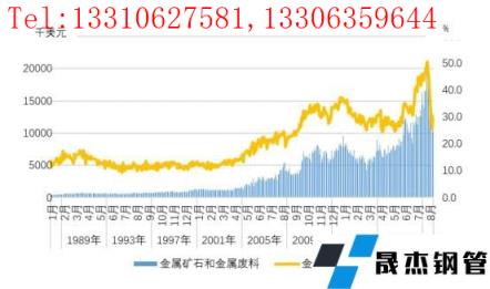 1988年至2021年澳大利亚金属矿及金属料出口情况图