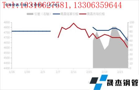 冬储期间,也就是2月上旬与中旬FDTG建材南昌市场采取保价政策,即1月26日至2月5日无缝厚壁钢管厂家定价为2月16日至2月25日这旬日定价均值,2月6日至2月15日无缝厚壁钢管厂家定价为2月26日至3月7日期间日定价均值,当前2月上旬与下旬的无缝厚壁钢管厂家定价已出,中旬定价还未出。南昌市场FDTG螺纹钢成交价与无缝厚壁钢管厂家每日定价差值,如下表所示。