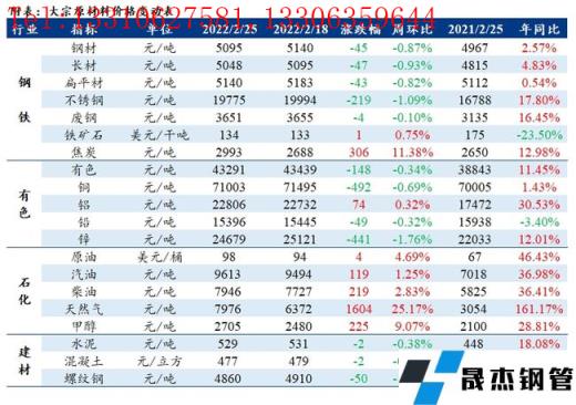 不锈钢:本周不锈钢价格呈现弱势下行趋势,周内现货成交明显减弱,社会库存持续垒库,现货持续下探,且周五市场反馈青山放松限价,青山代理价格普遍下跌200-300元/吨,市场恐慌情绪蔓延,期货盘面大跌超600元/吨,现货成交萎靡。市场现货成交疲软,加速贸易商抛货情绪,无缝厚壁钢管厂家发货相对正常,社会库存再有小幅增加。近期镍铁成交减少价格企稳,而304废不锈钢价格下调,不锈钢方面无缝厚壁钢管厂家挺价心态减弱,目前3月份无缝厚壁钢管厂家排产并无减产计划,但接单相对乏力,后续到货或将持续增加,预计下周304价格震荡偏弱运行。
