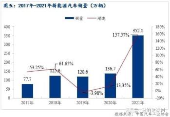 根据中汽协的数据统计显示,2021年,我国汽车产销量分别完成了2608.2万辆和2627.5万辆,同比分别增长3.4%和3.8%。其中,乘用车产销量分别为2140.8万辆和2148.2万辆,同比分别增长7.1%和6.5%。其中新能源汽车表现特别优异,大幅超出年初预期,全年国内新能源汽车销量达到352.1万辆,同比增长157.5%。