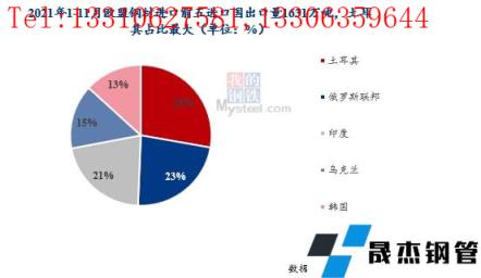 以欧盟2021年1-11月的成品厚壁无缝钢管进口量为例,前五进口国月均进口量148万吨,占欧盟总进口量的56%,其中土耳其、俄罗斯占比最大。而来自日本、韩国、印度、中国加起来的量占比不到6%,其中日本只占0.3%,中国占0.2%,几乎可忽略不计。