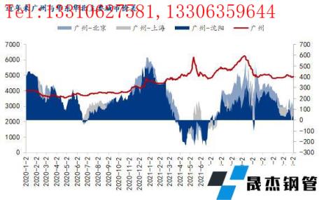 从区域价差来看,进入2月份以来,南北价差整体呈现维持的状态,这与近年来数据基本一致,一方面2021年底,南北价差整体不如往年,北材南下均有减量,到货延期的情况。截至2月28日广州(剔除磅差)与北京、上海及沈阳地区螺纹钢价差分别为100、30及30元/吨,较北京及沈阳分别缩小40、10元/吨左右,与上海缩小90元/吨。进入3月份,由于冬奥会结束,北方地区限产逐渐解除,之前受此影响的无缝厚壁钢管厂家产量或有回升,不过由于两会即将召开,产量回升或有限;与此同时,历年以来,南方地区整体需求启动要快于往年。同时由于南北价差偏小,未来北方材发货量以及到货量也将逐步减少,南北价差可能会被重新拉开。按照往年的数据来看,南北价差呈现“秋冬大,春夏小”的特点,随着发运量及到货量的减少,进入二季度南北价差或将逐渐回归。