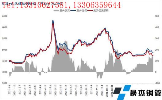 2022年2月川渝市场持续处于全国价格低洼,外省无缝厚壁钢管厂家不断减少资源投放,而本地无缝厚壁钢管厂家外发条件有限,供应压力较大。由于川渝资源重合性和关联性提高,两地区域价差幅度趋缓,2月份整体价差波动并不明显;而重庆与武汉价差依旧维持在100元/吨左右,湖北区域无缝厚壁钢管厂家投放意愿并不是很强,仅少量冬储资源流入重庆市场。