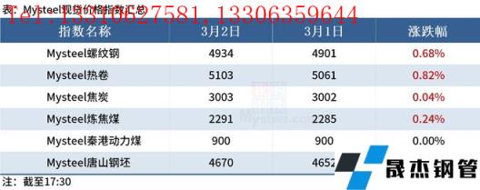 ◎ 本周唐山地区主流样本无缝厚壁钢管厂家平均铁水不含税成本为3289元/吨,平均钢坯含税成本4345元/吨,周环比上调93元/吨,与3月2日当前普方坯出厂价格4630元/吨相比,无缝厚壁钢管厂家平均毛利润285元/吨,周环比下调113元/吨。详情>>