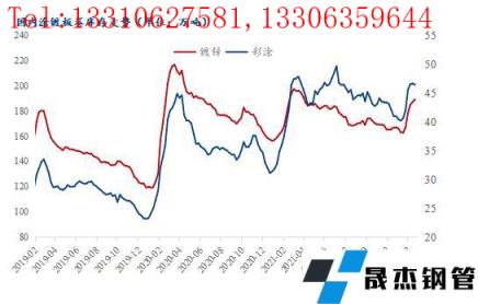 2月份镀锌和彩涂板卷产能利用率均处在偏低状态,主要是因为民营企业春节期间停产检修,检修时间大致7-15天,国营企业基本都在正常生产状态,到2月中旬以后受冬奥会限产影响较大,整个2月全国镀锌板卷产能利用率均值为49%,较去年同期大概下降10%左右。进入3月份以后,镀锌板卷的产能利用率在逐渐恢复,尤其是在冬奥会结束以后,恢复速度明显加快。但是3月份部分国营无缝厚壁钢管厂家又将面临年修,像首钢京唐1#镀锌检修5天,2#镀锌从3月4日开始检修5天,总共预计影响产量约1.1万吨。总体来看,3月镀锌板卷产能利用会有所恢复或维持在60%左右。