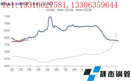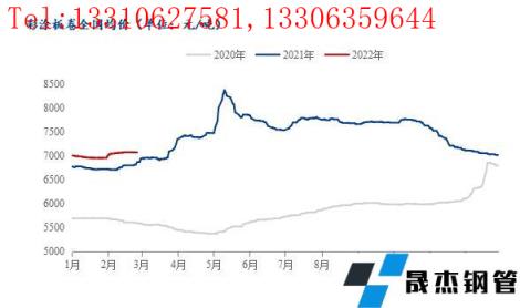 2月全国彩涂板卷价格均价为7057元/吨,较1月份6973元/吨上涨84元/吨。彩涂板卷同样也在节后迎来开门红,尤其是民营企业更是多次调整指导价,使得市场贸易商报价也是跟随调整。从图中可以看出,彩涂板卷价格高于近两年同期,无论是国营还是民营价格均是如此。虽然彩涂板卷价格仍然表现不错,但也存在两方面的矛盾。一方面,国营无缝厚壁钢管厂家出台3月份期货价格上涨300元/吨,与当前现货价格已然倒挂;另一方面,彩涂板卷需求暂时未有明显启动,商家普遍反馈需求不畅,下游客户拿货意愿较低,为了回笼资金保证现金流也仅能倒挂出货,所以当前彩涂板卷处于有价无市的状态。