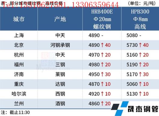 ◎杭州:3日早盘杭州优特钢市场价格涨30-40。现45#Φ30以上主流价格杭5350淮5370南5340,元立(直发)5350中天5340东方5280,40Cr杭5560淮5600;齿轮莱钢5750,铬钼建龙5910淮钢5960。(单位:元/吨)
