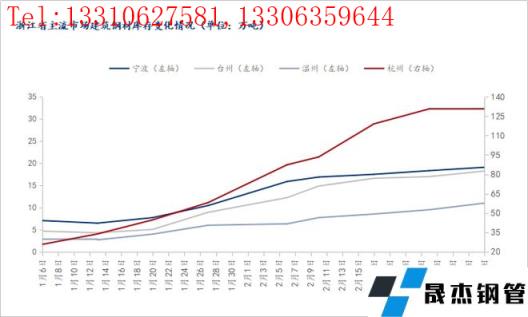 分市场来看,由于本周市场价格处于上涨态势,同时成交有所放量,所以本周库存增加不是很明显;甬台温地区库存情况则与杭州地区保持一致,本周库存继续增加,但增加幅度明显缩小。据了解,温州地区本周镔鑫、扬钢,贵航,萍钢等资源有到货,市场库存小幅增加;宁波地区,本周到货资源以镔鑫、亚新、杭钢为主,其他协议量资源依旧正常到货;台州地区本周库存增加不明显,螺纹钢到货主要以镔鑫、亚新、沙钢、华宏等。整体来看,浙江建筑厚壁无缝钢管市场盘线库存量已经明显偏多,螺纹钢库存则处于市场预期内,目前库存暂无较大的压力。