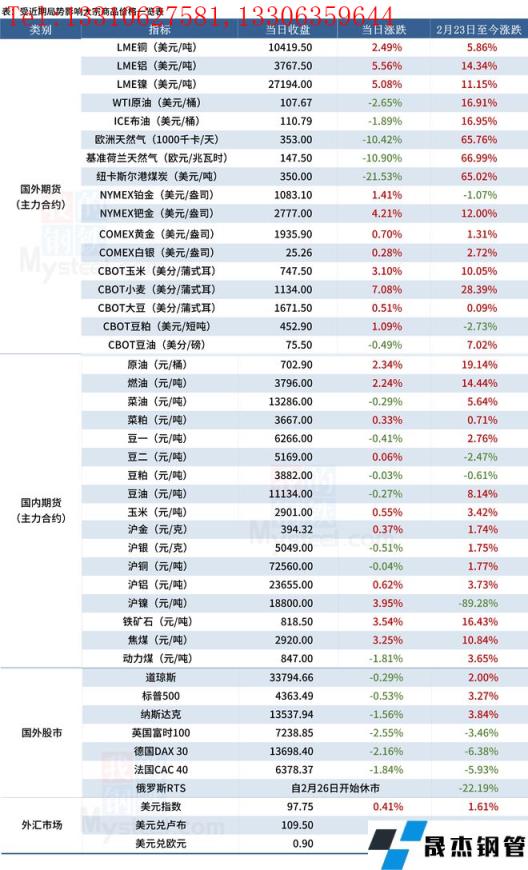 近期,受国际局势影响,全球金融及大宗商品市场出现较大波动。3月3日,原油等国际能源价格回落,天然气大幅收跌。汇总情况如下: