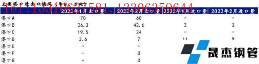 港口5:东北大港口,1月2月厚壁无缝钢管总计出口量约70万吨,较2021年同期小幅减少1.4万吨。