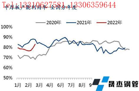 概述:2月份,国内中厚板品种价格呈现冲高后小幅回落的走势。供应方面,在冬奥会、春节、采暖季限产影响下,2月上中旬无缝厚壁钢管厂家产量持续偏低,不过,由于无缝厚壁钢管厂家盈利情况明显好转,因此,冬奥会过后,无缝厚壁钢管厂家产量迅速增加。需求方面,由于今年春节返乡比例同比去年大幅增加,所以今年春节后的需求启动速度是缓慢的,不过由于无缝厚壁钢管厂家接单较好,导致市场流通板资源在减少,这从今年节后社库也能侧面验证。3月份,中板基本面从供需双弱逐渐转变为供需双强,那么价格走势又如何呢?接下来,我们先看一下基本面情况。