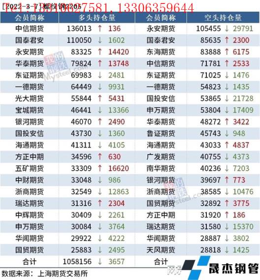 截至3月7日收盘,螺纹钢2205收5094元/吨,涨4.36%;热卷2205收5380元/吨,涨2.81%;铁矿石2205收870元/吨,涨7.08%。