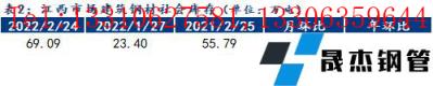截止2月24日,据我网调研江西省主流市场包括南昌、赣州、九江、新余和鹰潭五大市场的样本仓库建筑厚壁无缝钢管社会库存总量为69.09万吨,较去年同期库存增加13.3万吨,年同比增幅为23.84%;从累库节奏来看,2021年农历同期库存周环比增幅为9.64%。2月初,经过春节假期累库,江西市场库存整体大幅增加,节后省内多数无缝厚壁钢管厂家正常生产,下半月FDTG持续检修,下游工地陆续复工,市场累库速度放缓。进入3月,需求恢复带动市场库存去化速度加快,江西市场库存有望迎来拐点。