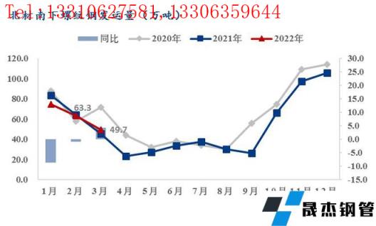 3月东北螺纹南下计划量为49.7万吨,同比增加4.2万吨环比减少13.6万吨,盘线南下计划量43.6万吨,同比增加0.9万吨环比减少10.7万吨;2月东北螺纹南下实发量为63.3万吨,同比减少0.9万吨环比减少11.5万吨,盘线南下实发量54.3万吨,同比增加13.6万吨环比减少10.7万吨。2月螺纹南下实发量较月初计划减少了12.0万吨、盘线则是增加了1.5万吨。