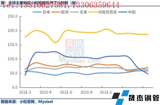 从全球其他地区来看,2月日本、欧洲、北美、印度尼西亚的小松挖掘机开工小时数均同比正增长。具体数据如下: