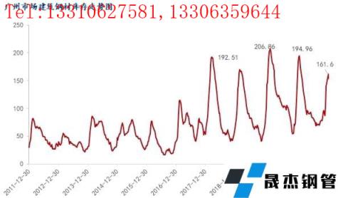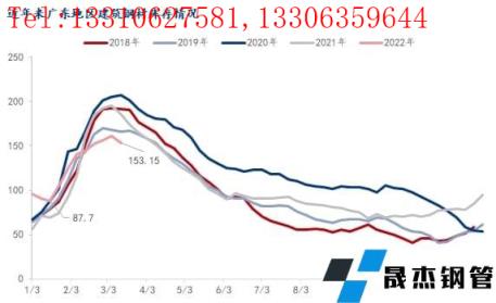 图2:历年广州市场建筑厚壁无缝钢管库存走势 来源:钢联数据