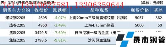 ◎ 3月14日,全国15家长、短流程代表无缝厚壁钢管厂家废钢库存总量98.07万吨,较上周五降1.1万吨,降1.09%;库存周转天数9.5天,与上周五降0.7天;日均消耗4686.67吨,较上周五增5.24%;日均到货量4360.2吨,较上周五降0.16%。详情>>