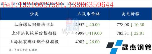 分地区方面,上海螺纹钢价格指数4952,下跌40.0;上海热轧板卷价格指数4998,下跌119.0。(单位:元/吨)