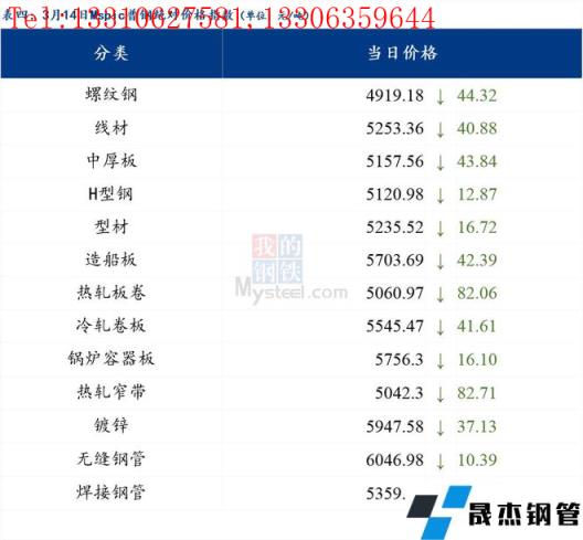 3月14日普钢绝对价格指数变化:综合指数5173.72,下跌51.11;螺纹钢指数4919.18,下跌44.32;线材指数5253.36,下跌40.88;热轧板卷指数5060.97,下跌82.06;冷轧板卷指数5545.47,下跌41.61;中厚板指数5157.56,下跌43.84。